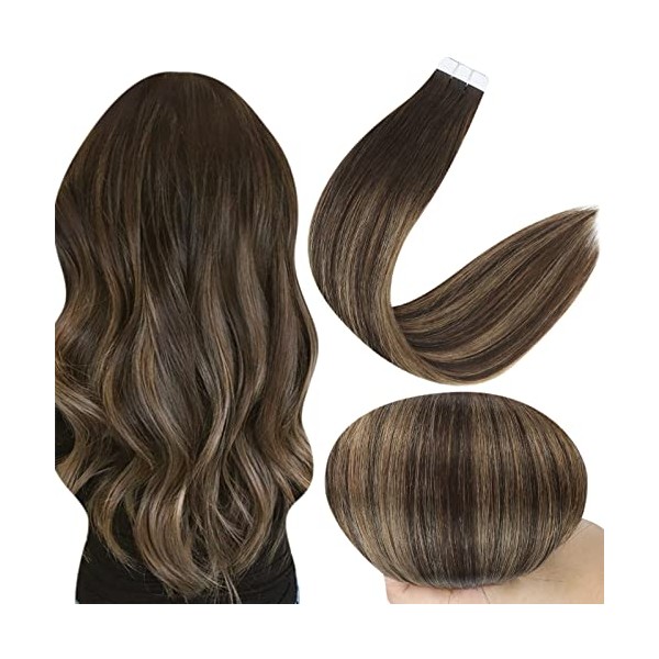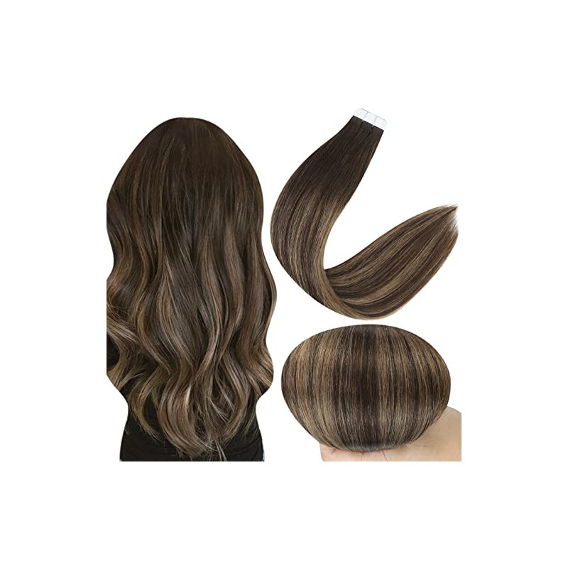 Full Shine Tape in Hair Extensions 20inch Color 2 Fading to 8 and 2 Glue in Extensions Hair 50g Seamless Tape in Extensions Brown Hair Extensions