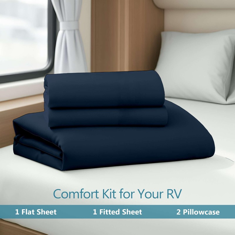 Full Size 4 Piece Sheet Set for RVs (53x75) - Navy Blue, Deep Pocket Fits 15 Inch Mattress, Ultra-Soft Brushed Microfiber, Ideal for Home, RV Bunks, Guest Beds & Travel Trailers