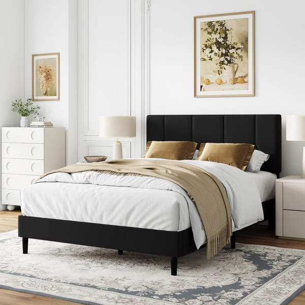 Upgrade your bedroom with this stylish full size bed frame. Featuring a soft velvet upholstered headboard, it adds a touch of elegance. The platform bed frame with sturdy wooden slats provides strong support for your mattress, no box spring needed. Designed for easy assembly, this bed frame with headboard is noise-free and built to last. Perfect for any bedroom, it combines modern style with practical support — a great choice for a comfortable, hassle-free sleep setup.