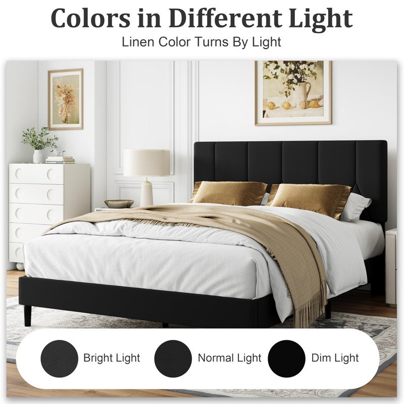 • Peaceful Sleep: Featuring foam-padded tape and sturdy wood slats, this platform bed frame reduces noise for a quiet, restful night. Support legs offer extra stability, ensuring every sleep is calm and undisturbed.