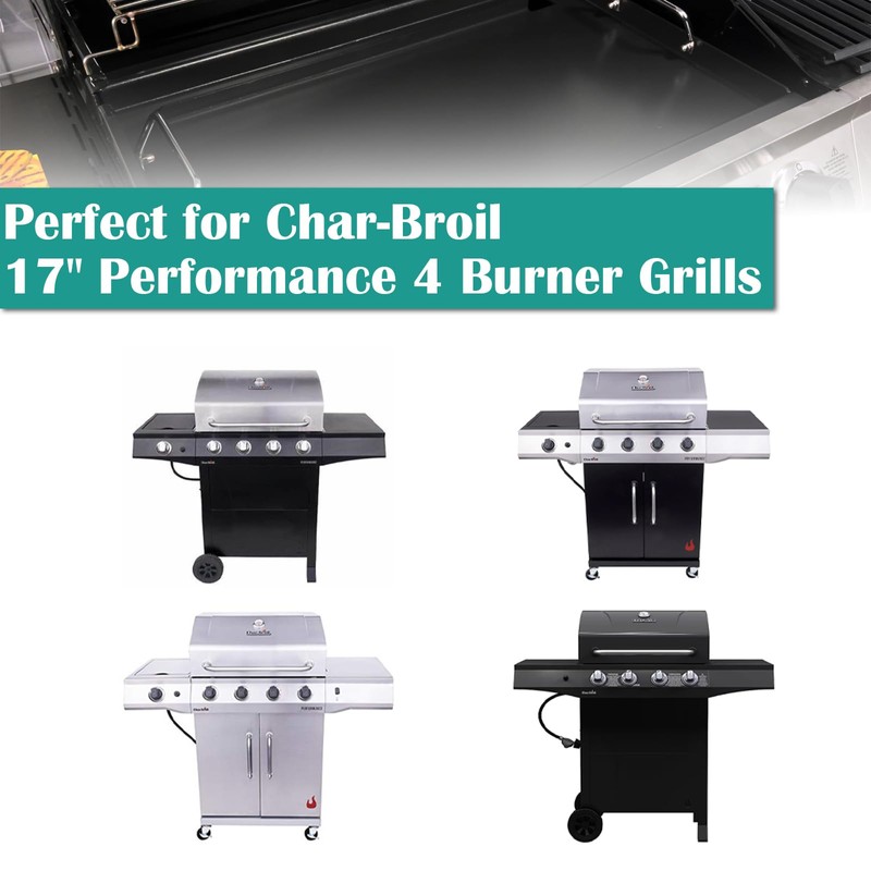 - 【Perfect for Charbroil Performance 4 Burner Series Grills】Flat Top Grill Griddle compatible with charbroil Grills model 463365021 463351021 463350722 463354021 463365522 463352521 463351221 463350521 463350922 463353521 463353021 463351521 463352021 463344523 Grills.【Note】Because the Performance Series grills are manufactured in different years, the dimensions vary, so please check whether the front and back of the grill is 17 inches or 18 inches in length before purchasing.