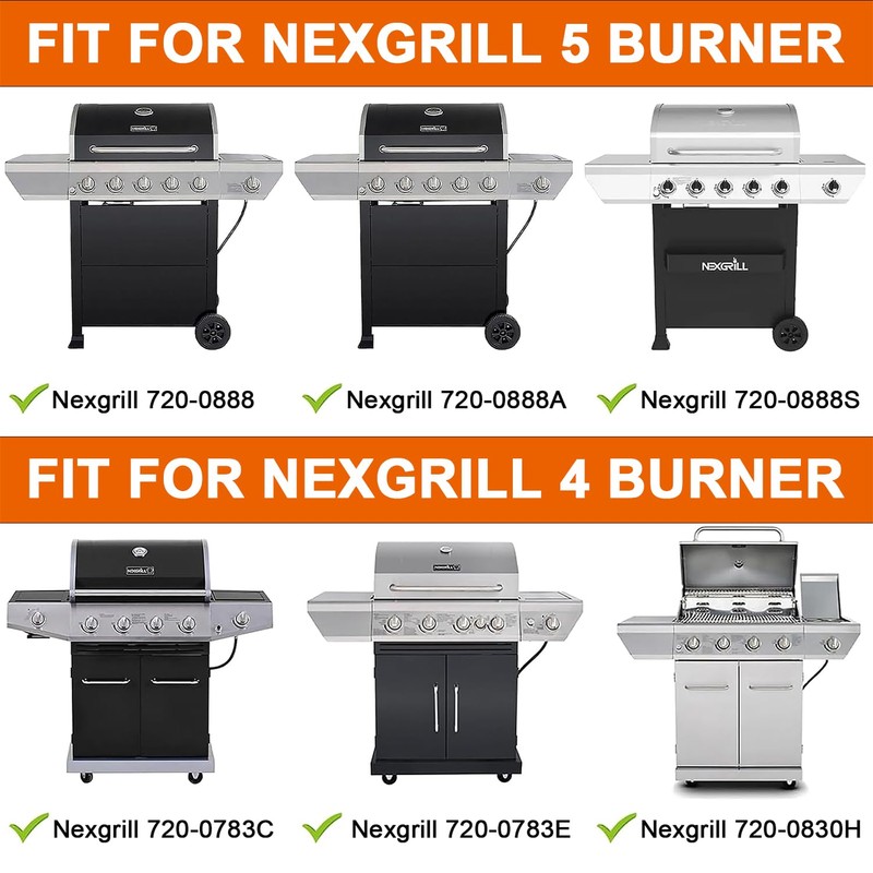 - 【Fit for Nexgrill 4 Burner】Perfect fit for Nexgrill 4 burner 720-0830H, 720-0830X, 5 Burner 720-0888 720-0888N 720-0888S, Nexgrill 720-0830D, 720-0958A, 720-0783E, 720-0783C, 720-0697E, 720-0341, 720-0549, 720-0670A, 720-0670C, 720-0697, 720-0719R, 730-0958A, 720-0670, 720-0670D, 720-0864.