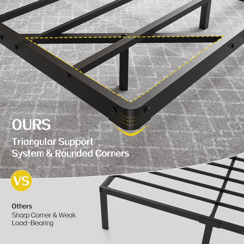 - Heavy-Duty and Stable Construction: Crafted with 11 sturdy metal slats, 4 reinforced cross beams, and 9 steel legs, this bed frame supports up to 1000 lbs, ensuring a stable and noise-free sleep environment.