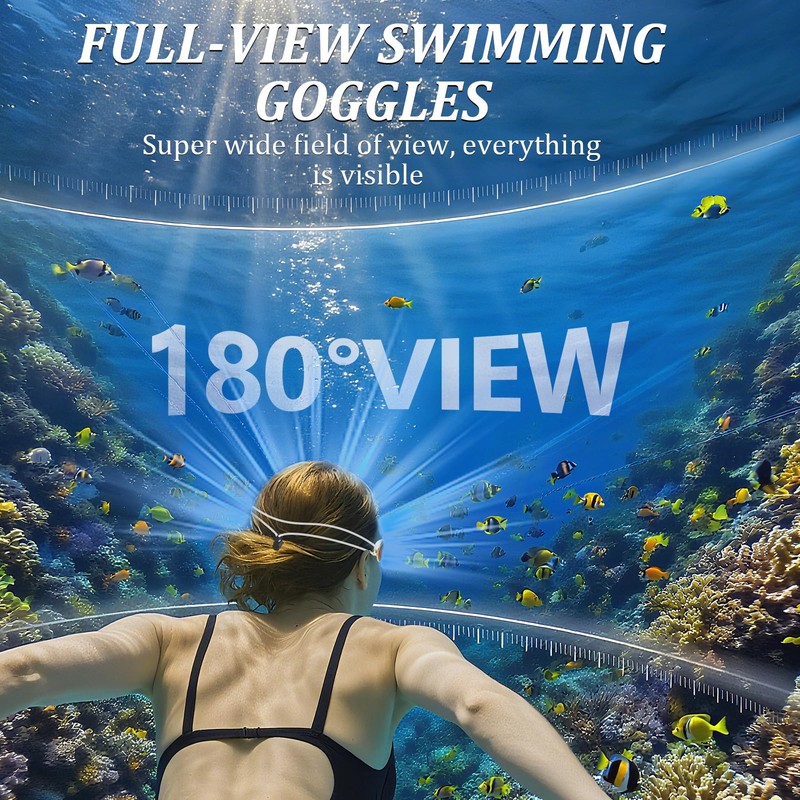 - [180-Degree Full-View Anti-Fog Swimming Goggles] High-definition curved lenses provide a wide 180-degree field of view, allowing you to enjoy a wider field of vision in both open water and the pool.