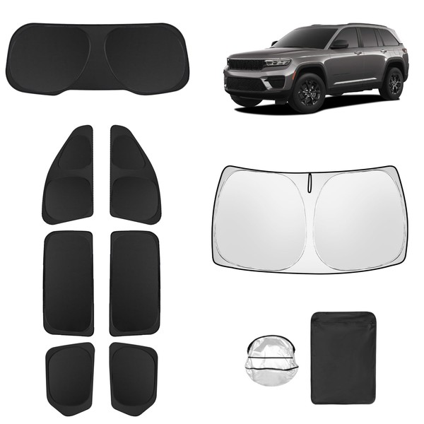 Full Window Sunshade for 2022-2025 Jeep Grand Cherokee,Windshield Side Triangular Rear Window Windscreen Shield Cover Sun Blocking, Heat Shield & UV Protection