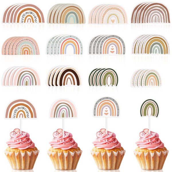 Decoraciones bohemias para cupcakes con temática de arco iris para decoraciones de fiestas, juego de adornos bohemios para cupcakes para niños y niñas, suministros de fiesta de baby shower