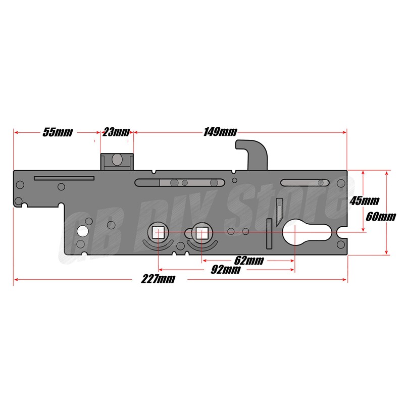 Fullex Door Lock XL 45mm Backset Lock Case Gear Box With Hook Twin 2 Spindle