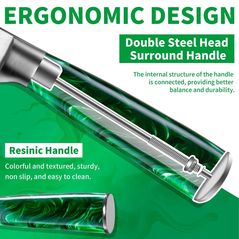 - The ergonomic handle provides a solid grip while the shape of the bolster delivers optimal weight and balance. Non-slip pakka wood/resin handle is able to maintain it’s friction even then the handle is wet, make the cutting more safe and effortless.