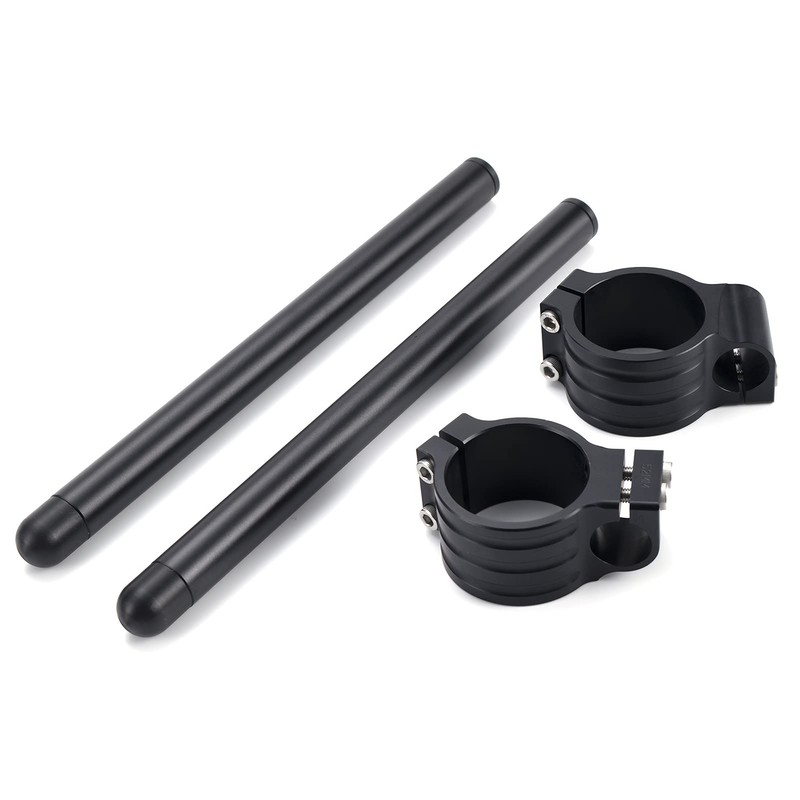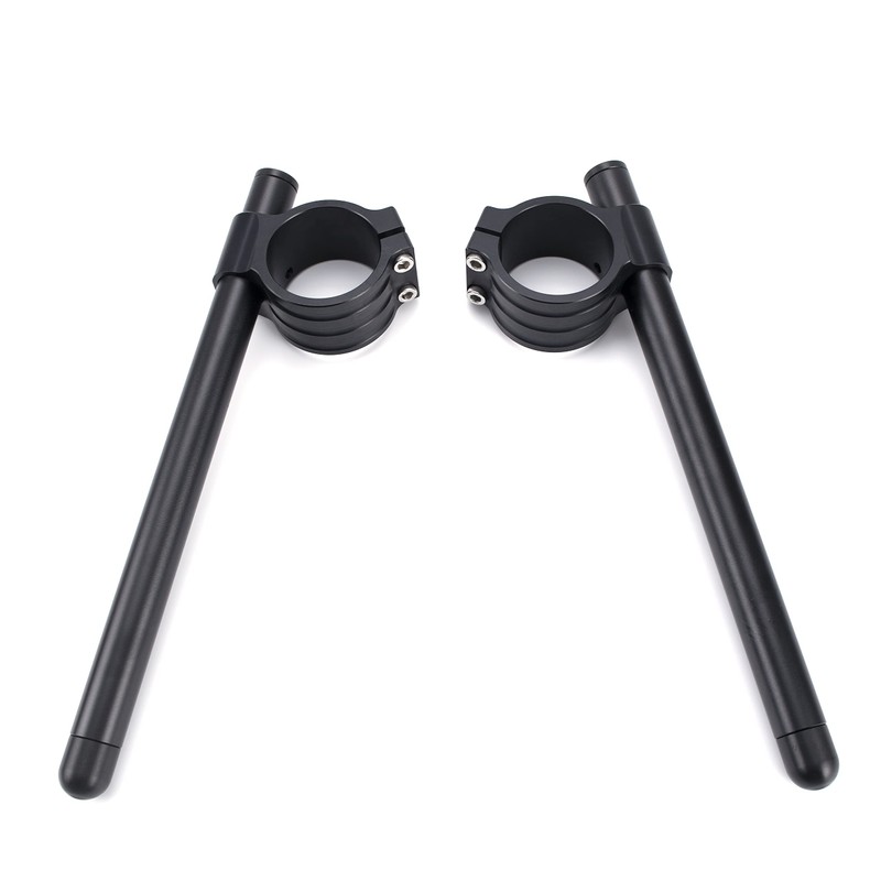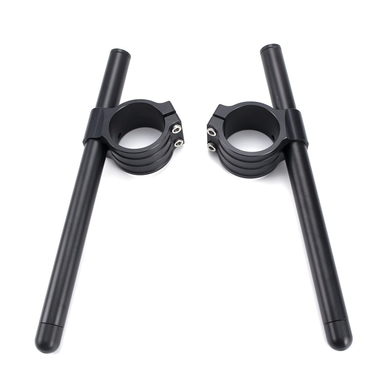 The ergonomic design minimises fatigue and discomfort by creating the optimal sitting position. Two-piece clamp design for easier installation without having to remove the top triple tree clamp or disassemble your entire front part. Use these below or top on the triple easy replacement. Each clamp is CNC machined to ensure maximum weight saving without sacrificing strength.