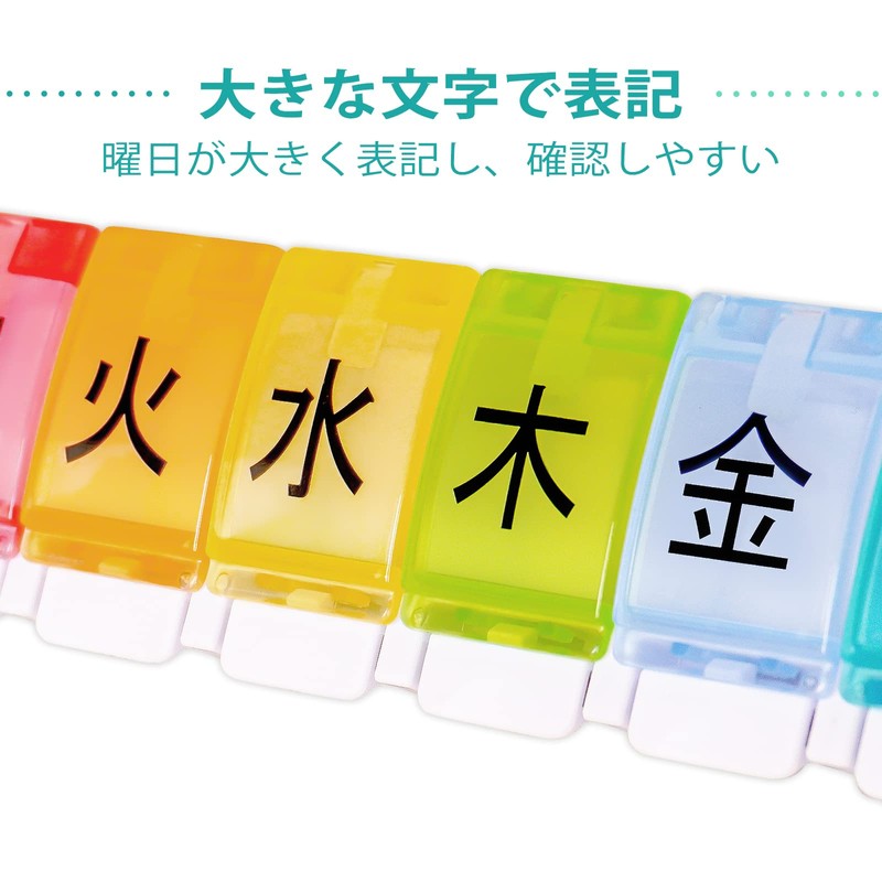 - (once a day per week) Easy to see day mark, you can find the medications you need