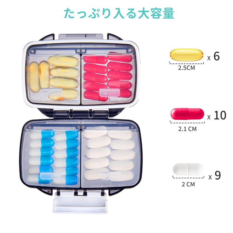 (Safe and Double Protection) The exterior has a strong lock that provides a sense of security. No need to worry about the lid opening in your bag or dropping your medications easily. In addition, there is a separate lid on the inside to prevent drugs from mixing.