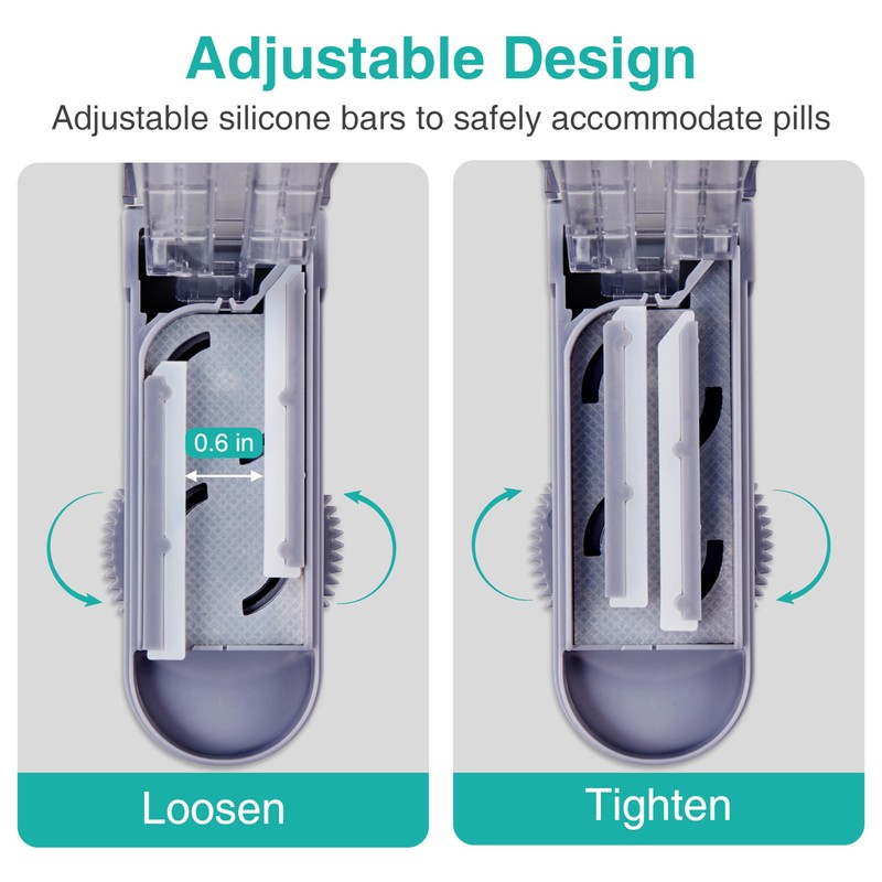 - 【Size Adjustable Design】Handling pills up to 0.6 inches in width, the pill splitter cutter cut pills in half, eliminating the frustration of pills not fitting into the cutter
