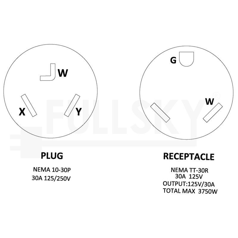 Fullsky FC-103TT 10-30P to TT-30R Adapter Male NEMA 10-30P 30Amp Dryer Plug to TT-30R 30Amp RV Adapter Female Output 125Vlot