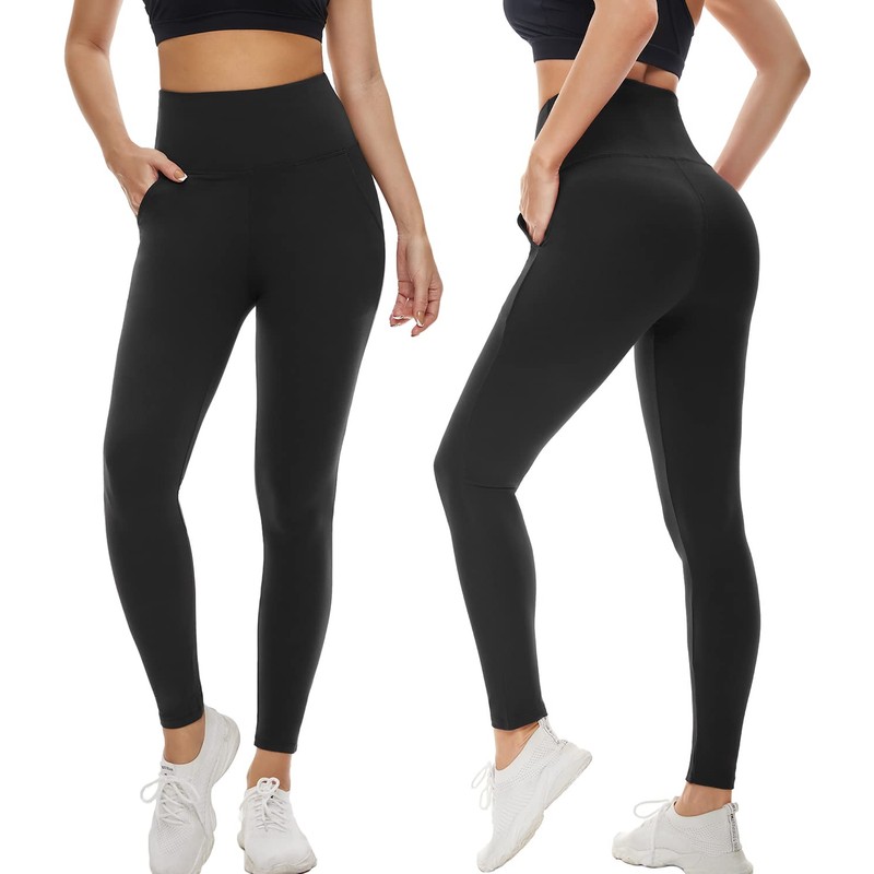 FULLSOFT Soft Leggings for Women - High Waisted Tummy Control No See Through Workout Yoga Pants (Black (with Pockets), Small-Medium)