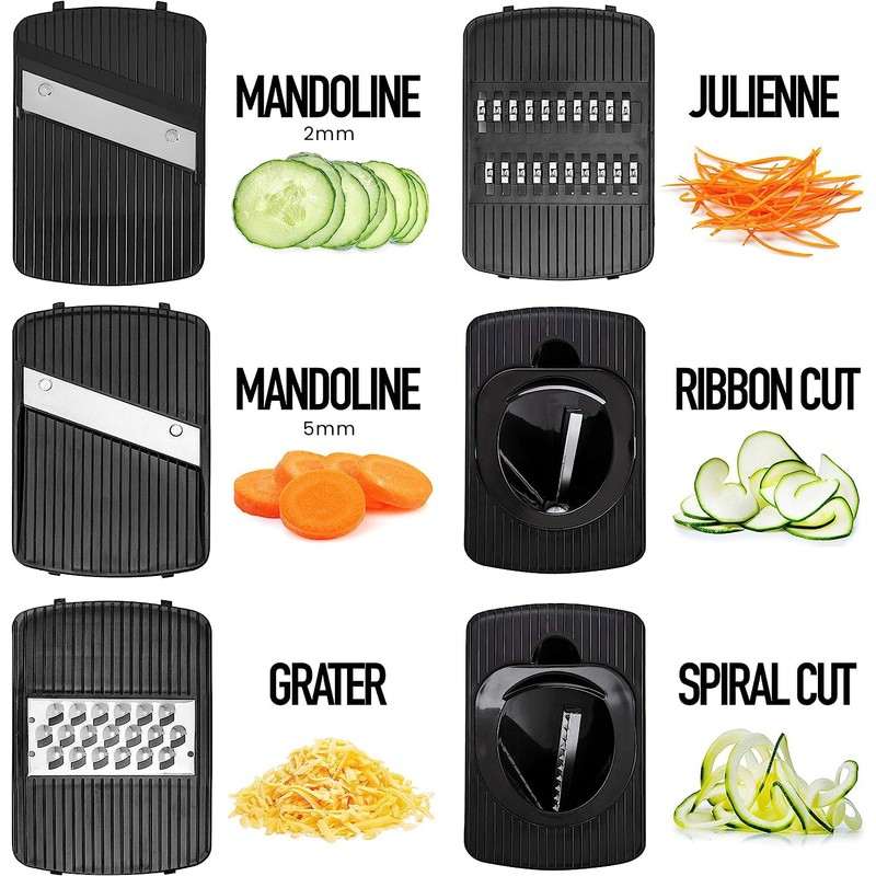 - Greatest functionality on the market - 6 interchangeable blades meet all your slicing and grating needs whilst our spiralizers are perfect for zoodles, healthy vegetable pastas and gorgeous garnishes