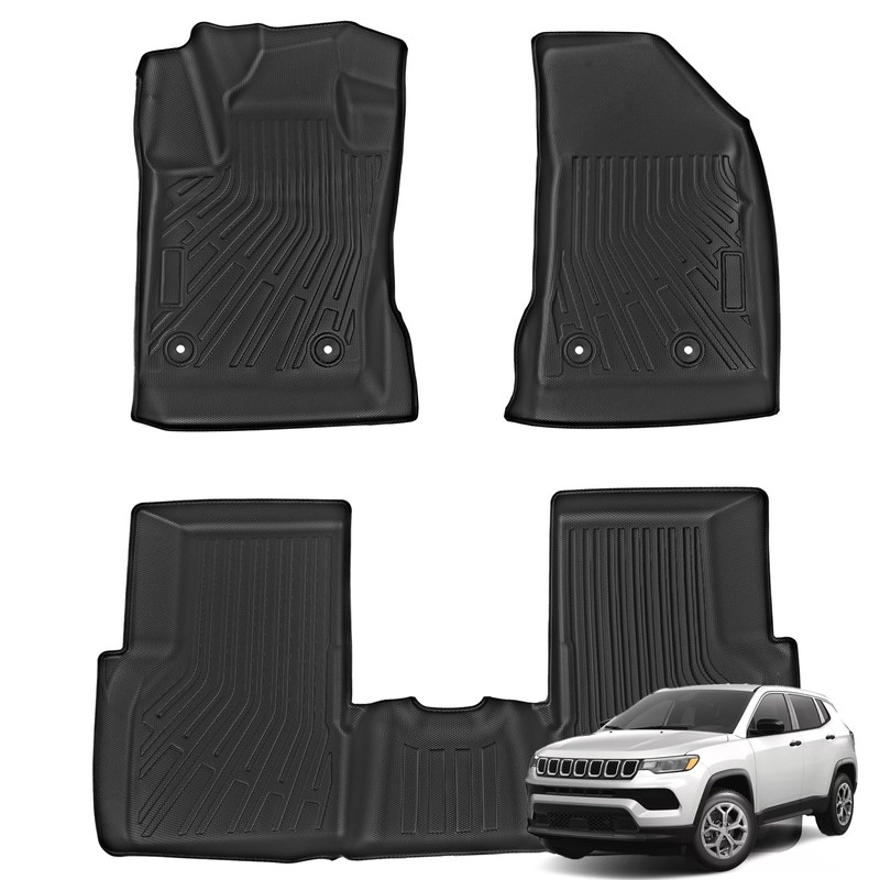 Fullux Floor Mats Car Mats Compatible with 2017-2024 Jeep Compass All Weather Floor Mat Floor Liner Waterproof Front & Rear Row Full Set Automotive Floor Mats for Cars Black