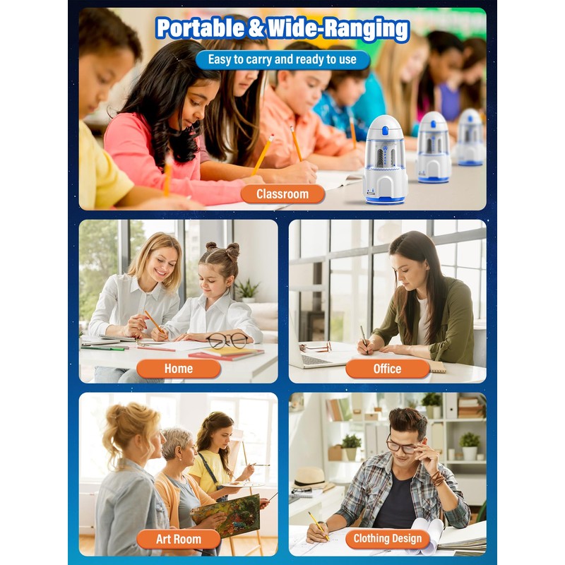 - Fully automatic pencil sharpener: simply place the pencil in the electric pencil sharpener, electric sharpener will sharpen the pencil in 5 seconds and then automatically pull back and pop out, very comfortable, no need to manually avoid children touching the pencil sharpener to protect children's hand safety. Perfect for use at home, school, office and art studio.