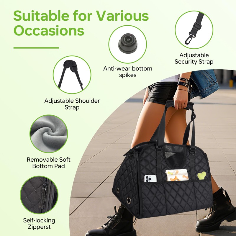 Why buy a dog soft-sided carriers for your cats and small dogs?1.All-in-One Solution: Combines safety, comfort, and style for pets and owners. 2.Premium Materials: High-end fabrics and hardware built to last. 3.Thoughtful Details: From ventilation to storage, every feature addresses real needs. Ideal for daily commutes, shopping, or road trips—this carrier ensures your pet travels in luxury while simplifying your life!
