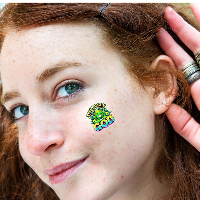 Fully Rely On God Temporary Tattoos, Set of 50, Frog Design