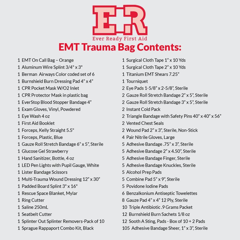 - TRAUMA RESPONSE TOOLS & ESSENTIAL GEAR: Equipped with vital instruments like titanium-bonded EMT shears, a CPR mask with one-way valve, penlight with pupil gauge, bandage scissors, forceps, ring cutter, and more. Each item is chosen to ensure readiness during high-pressure trauma situations encountered by EMS, fire, and rescue personnel.