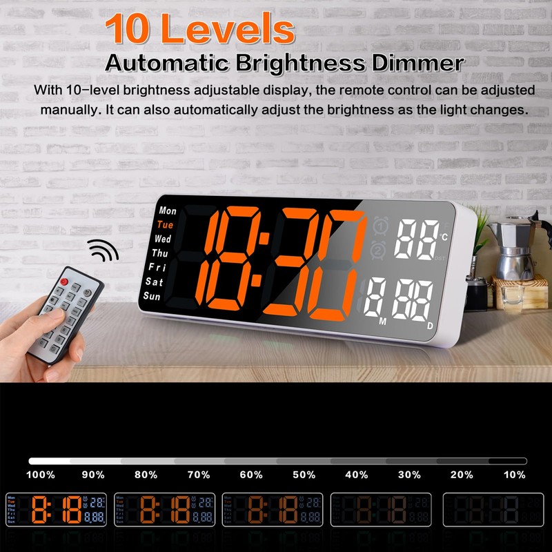 - 【Auto Dimming Sensor】The large digital wall clock has a built-in automatic dimming sensor, and it can also automatically adjust the brightness with the change of light, and intelligently provide you with what you need
