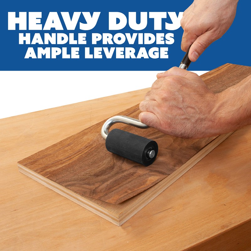 Fulton Long Handle J Roller with Thick Rubber Roller 1-1/2” in Diameter by 2-7/8” Wide For Veneers Laminate Wall Coverings and Edge Banding for Maximum Pressure Adhesion