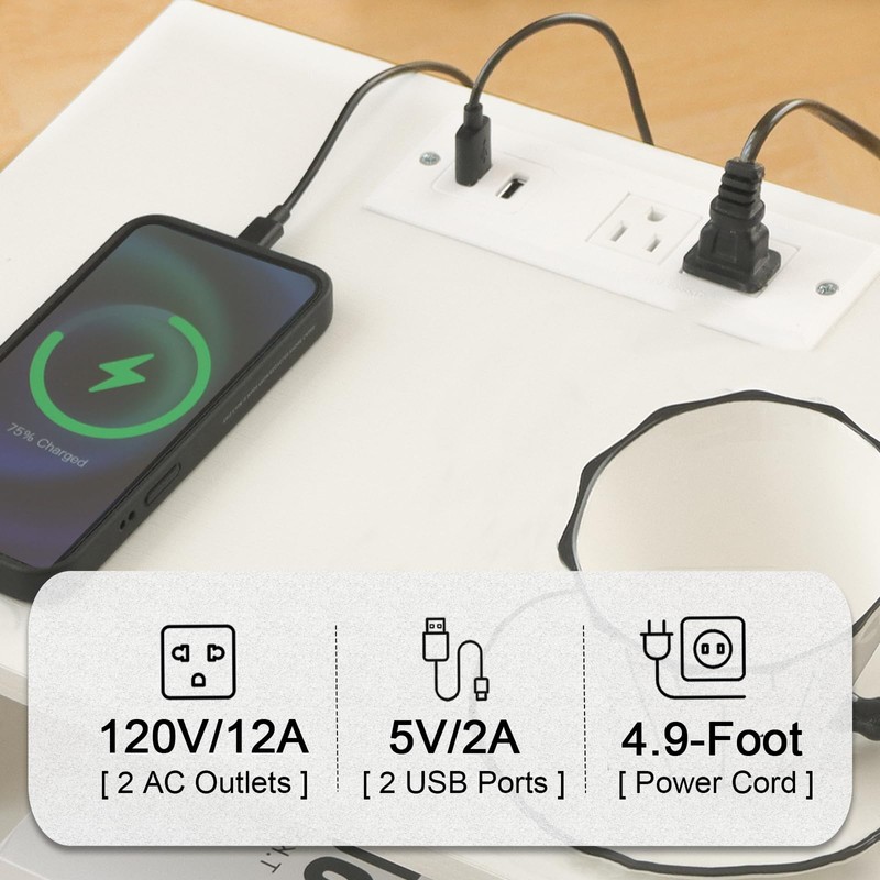 - Nightstand with Charging Station: The white nightstand features two AC outlets and two USB ports, enabling convenient charging of multiple devices at bedtime. Furthermore, it includes a 4.9ft power cord, providing flexibility in placement without any concerns about connecting to a power source