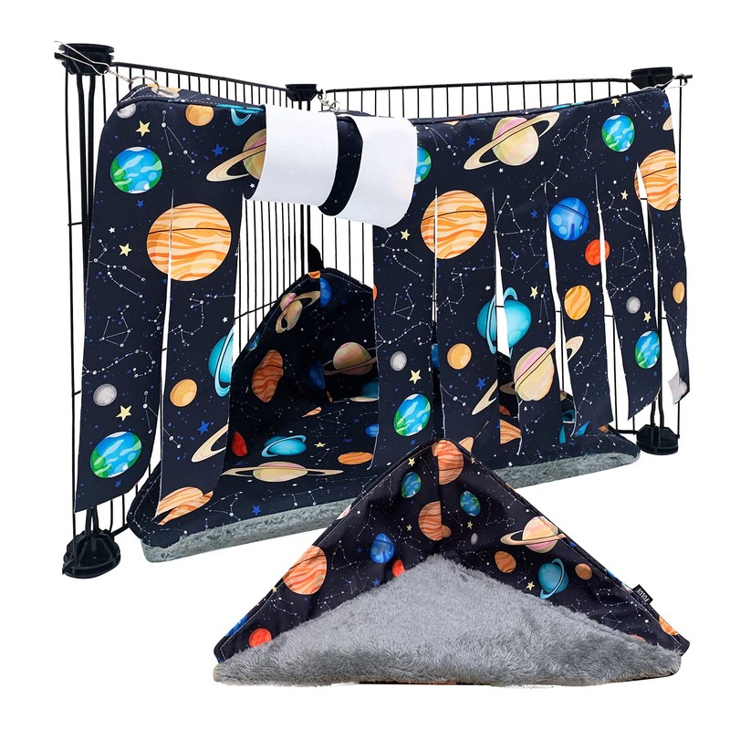 - 【Unique patterns】Landscapes, and Galaxy sky.let the little fur baby enjoy the traveling mood just staying at home. To make the corner cage more colorful,you have a variety of color options,which can be perfectly integrated in any of your home styles.