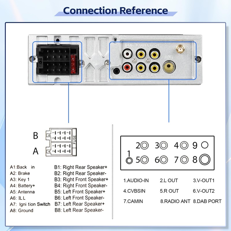 • 【More Extended Functions】 Our car radio is equipped with a wide range of extension ports, enabling you to connect various external devices. These include USB drives, SD cards, additional microphone inputs, video media output/input, backup cameras, and more. Additionally, it supports multi-language settings and brightness adjustment for a customized user experience.