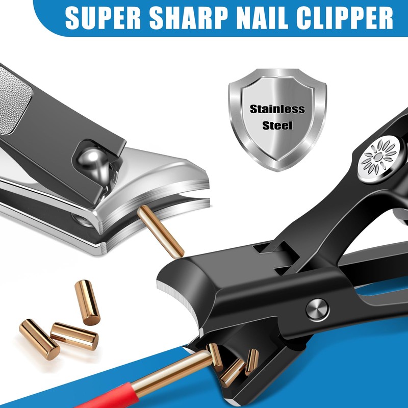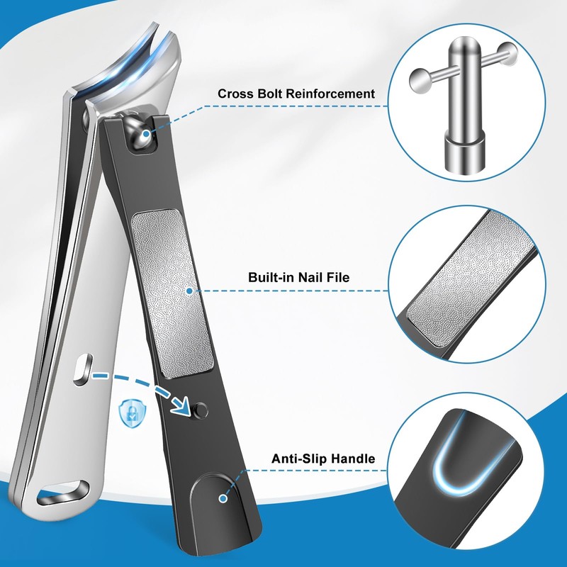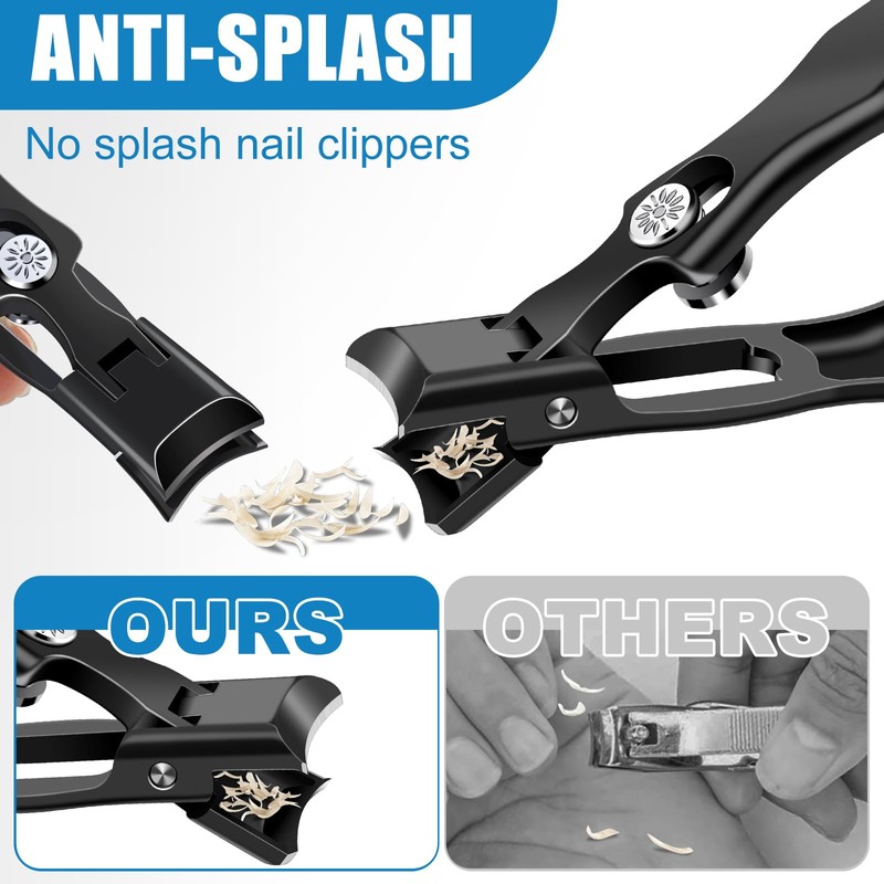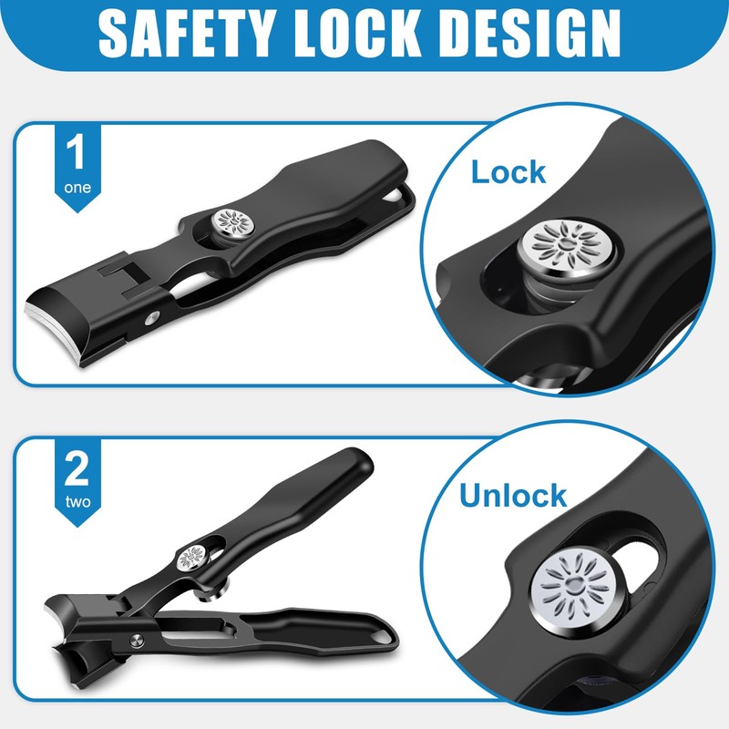 - Anti-splash and Safety Lock Design: Toenail clippers for thick toenails with catcher can effectively collect nail scraps, prevent nail scraps from splashing and hurting your eyes.The toenail clippers for seniors is wide jaw opening and extremely sharp, so built with a safety lock, push the slide lock into the safe position when you do not use the heavy duty toe nail clippers with catcher for men
