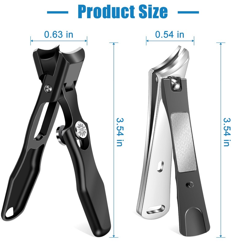 - Wide Jaw Opening For Thick Nails: The large toenail clippers for thick nails for seniors,up to 12mm (0.47in) opening for thick fingernails and toenails, and curved wide blades up to 16mm (0.63in), Enough to trim nails of any thickness, easier to trim thick fingernails and toenails than regular nail clippers for seniors