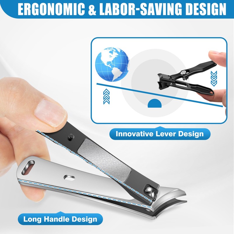 - Effortless Cutting: The heavy duty toe nail clippers for thick nails with an ergonomic design,the extended and widened handle conforms to the principle of leverage, which reduces the pressure needed when clipping nails, save your strength and time. It is very comfortable no matter how you clip thick nails