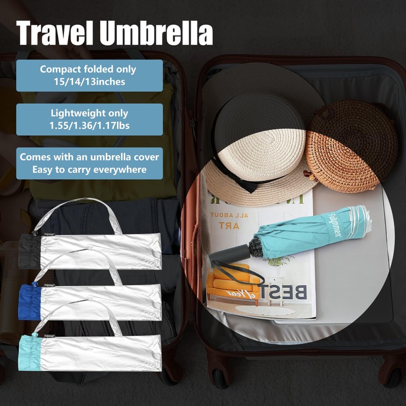 - ☀️UPF50+ UV PROTECTION: UPF50+ blocks 99% of UVA and UVB rays, Fulynmen Compact Sun umbrella UV protection blocks outside harmful UV rays while the underside absorbs UV rays and reduces glare bouncing off surrounding surfaces. winter, spring, summer, or Autumn, UV light is all around even on cloudy days but it will keep you safe in the sun.