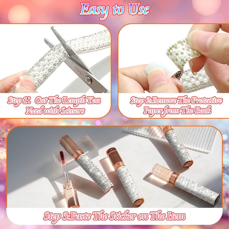 - How to Use:These Pearls Bling Tape Self Adhesive Are Easy And Convenient for You to Use.You Can Use Scissors to Cut The Appropriate Length,Remove The Protective Paper from The Back,Paste The Diamond Wrap on The Item You Want to Decorate,Press for A While And You Will Get The Exquisite New Item;Please Note:Don't Make The Sticker Touch Water within 24 Hours after Pasting