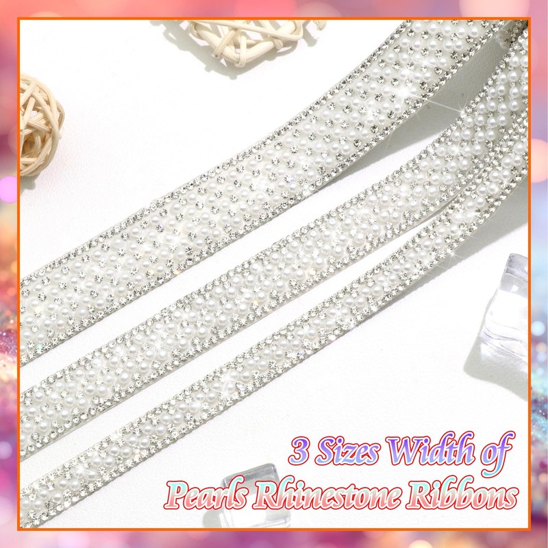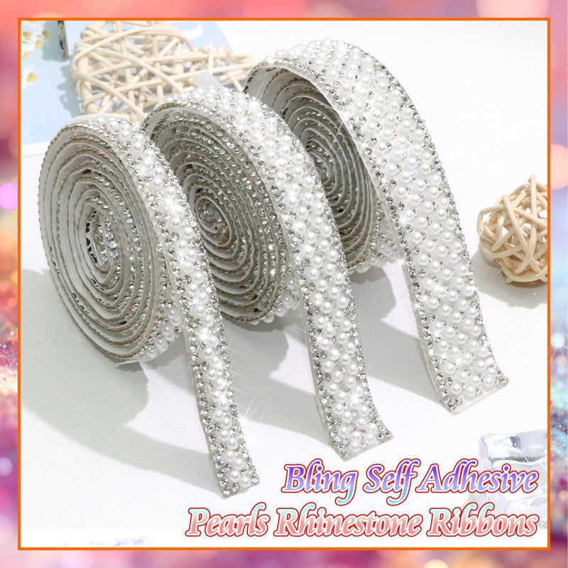 - What You Will Get:You Will Receive 3 Rolls Self Adhesive Pearls Rhinestone Ribbon Roll with 3 Sizes Width.These Bling Pearl Ribbon Stickers Are 3 Yards in Total,You Can Use This Self Adhesive Sticker to DIY Decorate Your Objects Freely,Add The Exquisite Effect on Your Objects