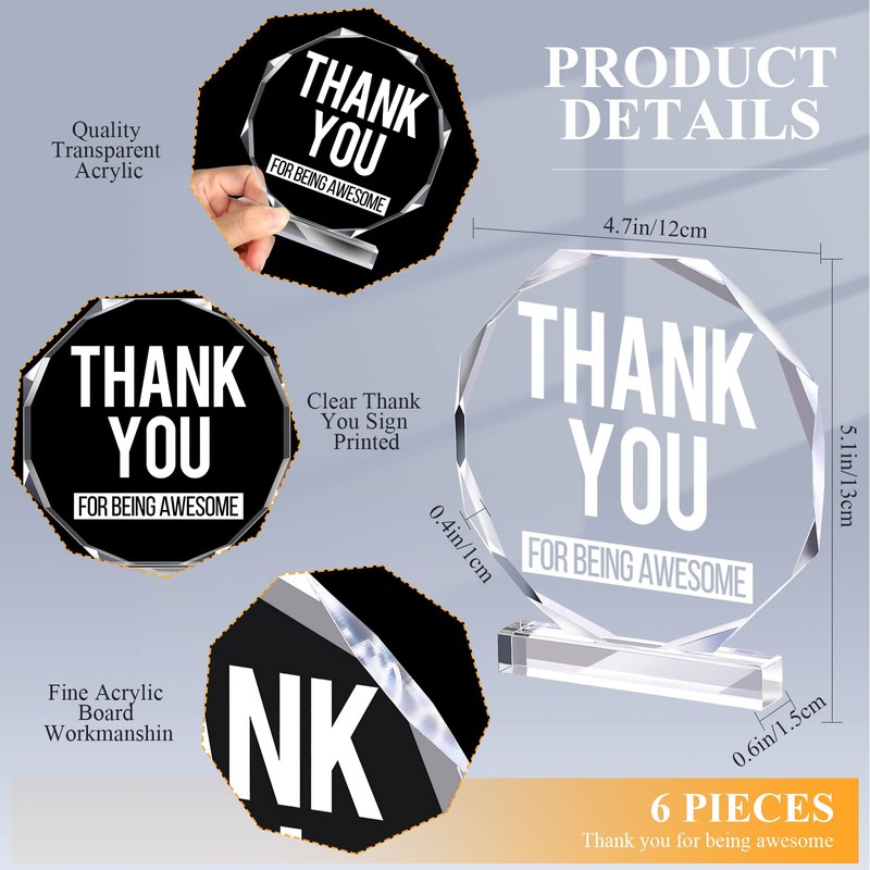 Fumete 6 Pcs Thank You Gifts Coworker Being Awesome Sign Acrylic Sign Appreciation Gift Award Plaque Paperweight Keepsake Workplace Reward for Employee Volunteer Office(Being Awesome)