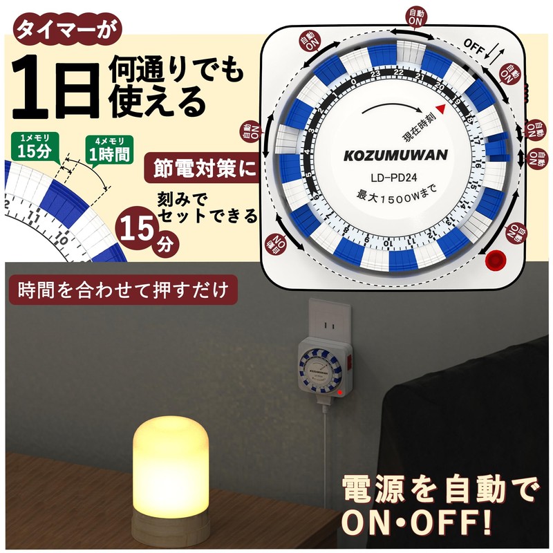 - Convenient: Connect it to the hot carpet to prevent forgetting to turn it off or turn it on depending on the time you wake up. If you use it with your robot vacuum cleaner or smartphone, it will also help prevent battery deterioration due to overcharging. In addition, when used for illumination or entrance lights, it reduces the hassle of turning off the electricity every time at night. If you set the lights to turn on at a certain time, it can also be used as a countermeasure for security while you are away from home. Find an easy-to-use outlet timer and start using it in your daily life