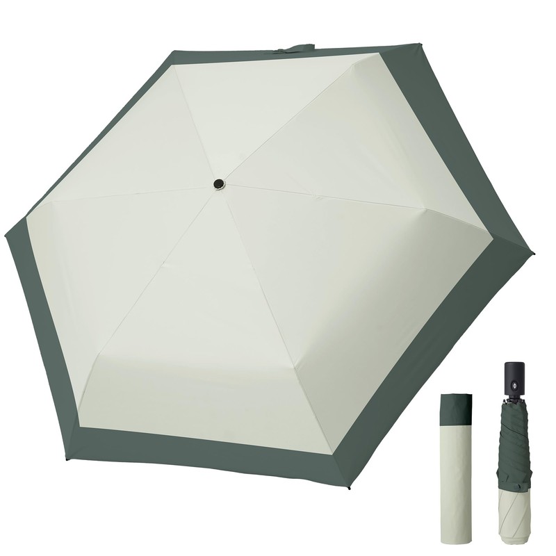 FUMITAKE 日傘 折りたたみ傘 UVカット100% 完全遮光 遮熱 ワンタッチ自動開閉 折り畳み傘 超軽量 コンパクト 折り畳み日傘 紫外線遮断 日焼け止め 耐風撥水 晴雨兼用 携帯便利 男女兼用 メンズ レディース 熱中症対策 日焼け防止 梅雨対策 ギフト プレゼント (オフホワイト×ビーングリー)