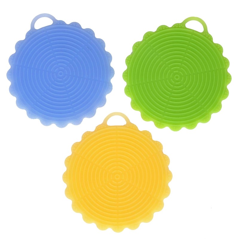 - DETAILS: Includes 3 circles. 1.8 oz. each. Circles have a 4.9” Diameter. Silicone. Designed without BPA, phthalates and latex. Blue, green and yellow. Surface wash. Age 3+