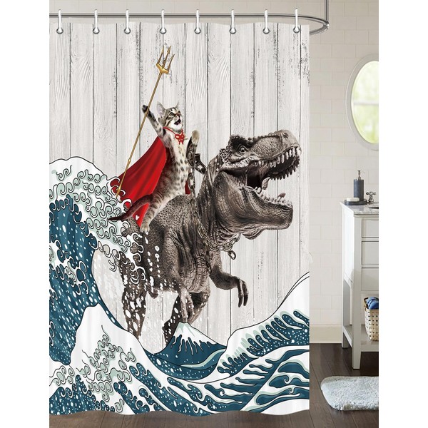 - Dinosaur Shower Curtain Quality: This funny cat shower curtain contains reinforced buttonholes, that fit most standard shower hooks (shower curtain hooks include).