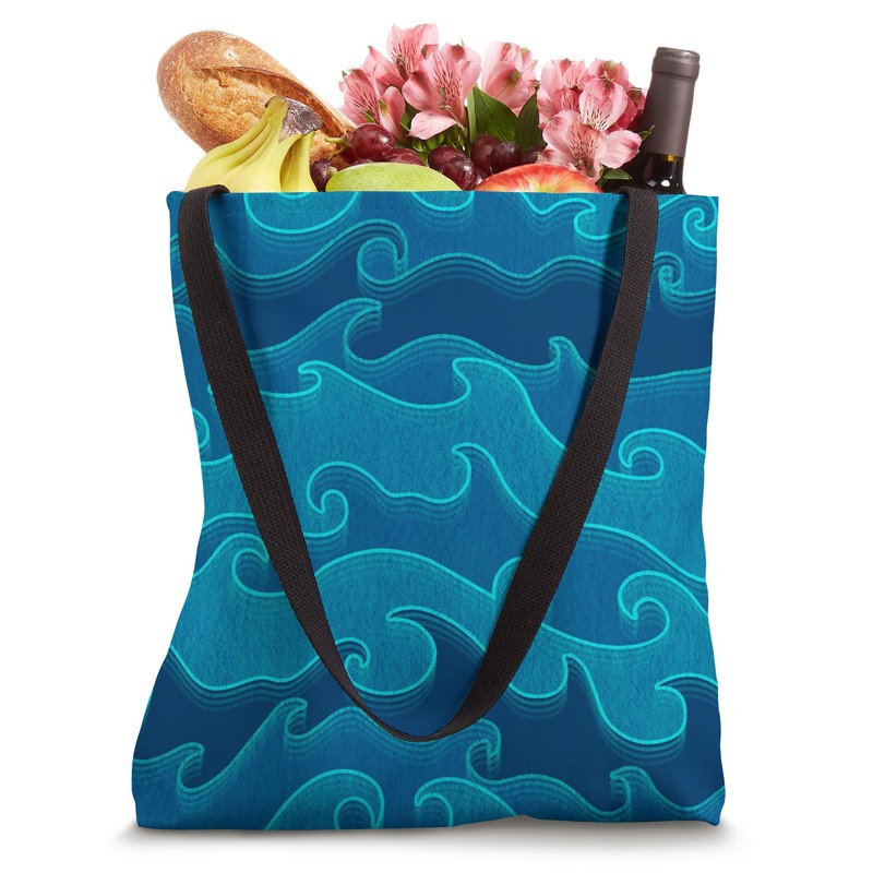 Fun Creative Blue Abstract Ocean Waves Surfer Beach Lover Tote Bag