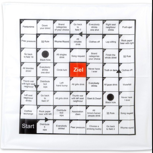 Fun Drinking Games as a Table Cloth, 70 x 70 cm, Playing Fields with Tasks & Questions for Party, Festival, Camping, Party Game for Birthdays, Fun Drinking Game, Party Cracker, Board Game, Drinking Game