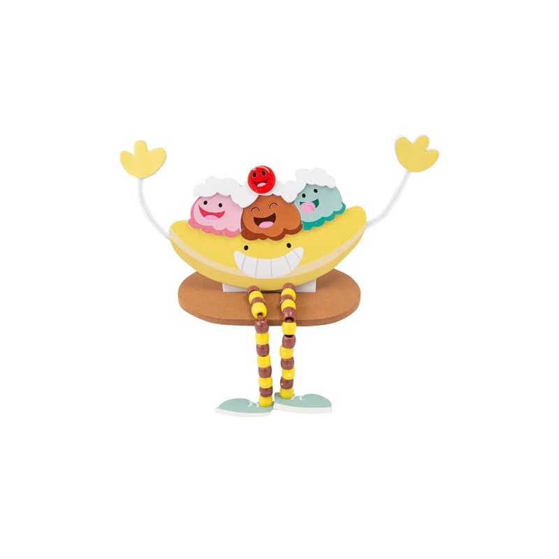 • ICE CREAM THEME: This craft kit features an easily recognizable summertime treat in the form of a smiling banana split that includes a cherry on top and dangle-legs.