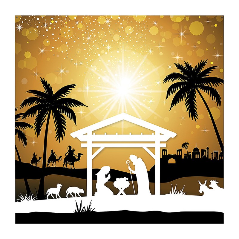 - ELEGANT DESIGN: Features stunning gold silhouettes of the Nativity scene, capturing the spirit of Christmas in a beautiful display., GREAT FOR PHOTOS: Creates a beautiful photo backdrop, providing a meaningful setting for holiday pictures and memories.