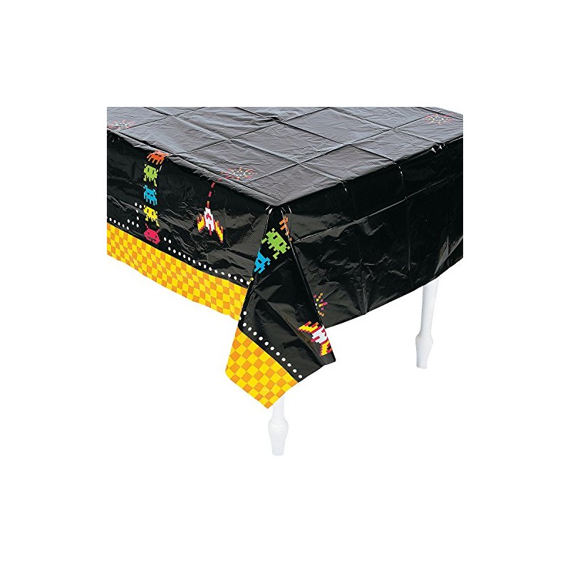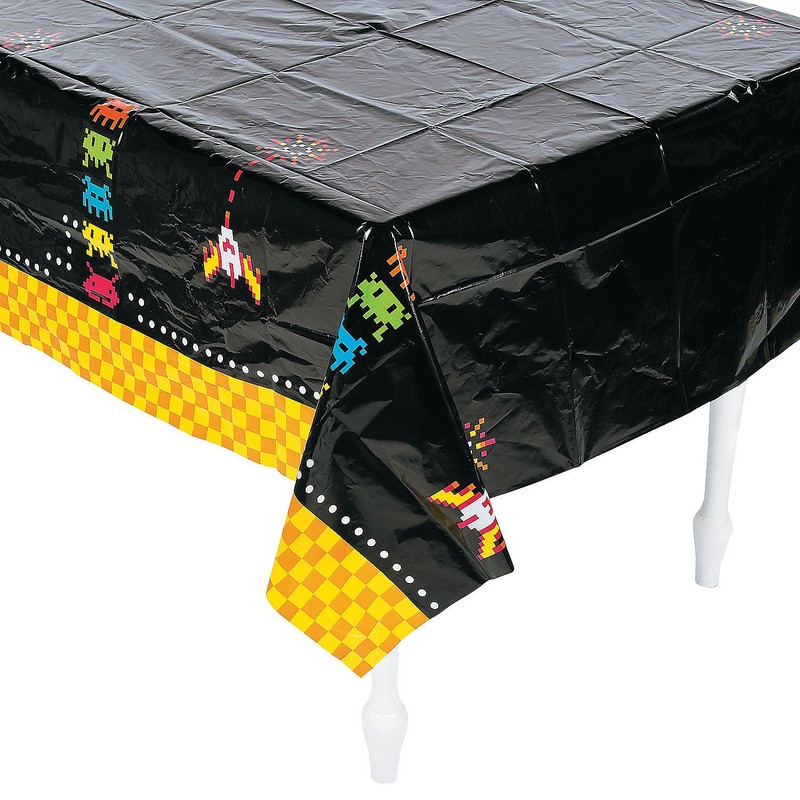 - Add this fun tablecloth to 80s party decorations to take guests back to a time when pixilated video games were far out.