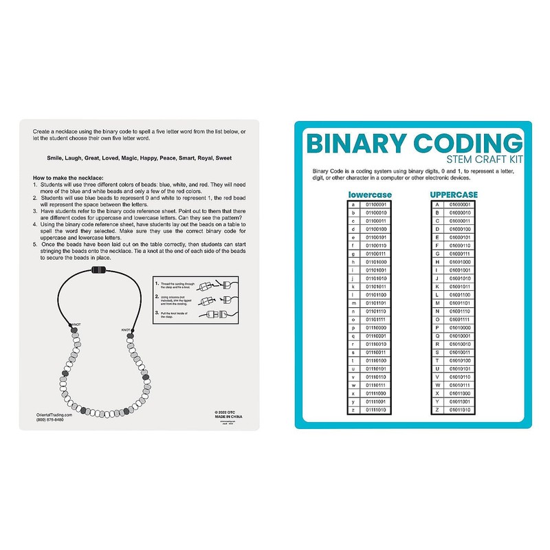 Fun Express Binary Coding Necklace Craft Kit - Makes 12