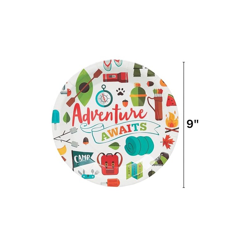 - UNIQUE CAMP PARTY DESIGN: Add a touch of whimsy to your outdoor celebrations with our adorable multicolor paper camp party dinner plates! Featuring a fun and vibrant camping-themed pattern, these plates are sure to be a hit at any camp-themed event or gathering.