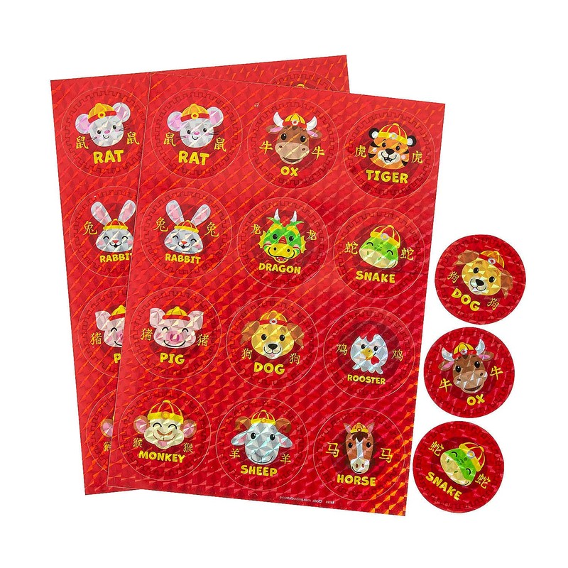 Fun Express Chinese New Year Zodiac Prism Sticker Sheets Bulk 24 Pc