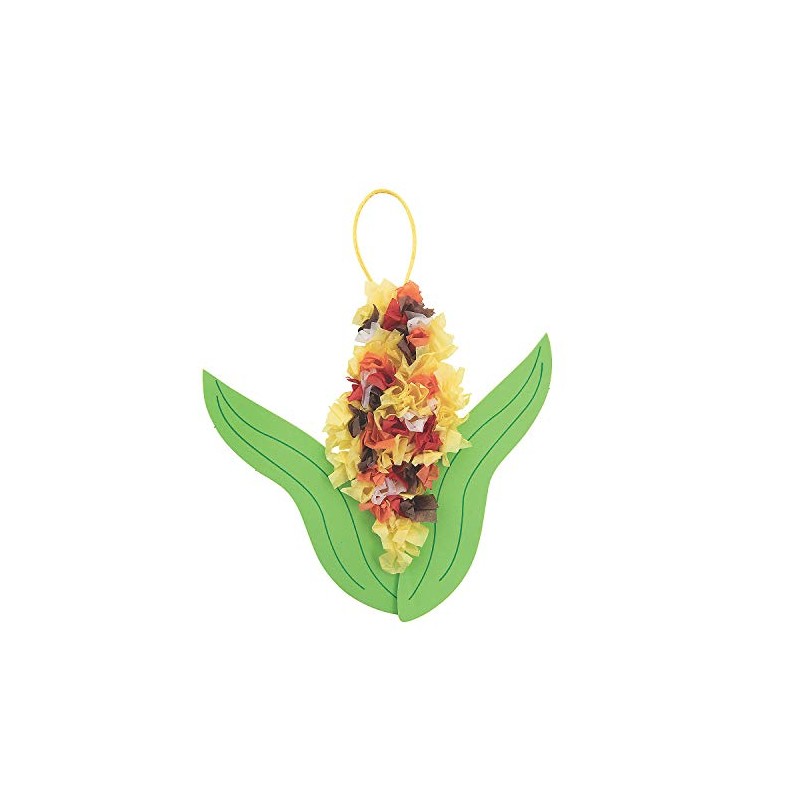 Fun Express Crinkle Tissue Paper Corn Craft Kit - Makes 12 - No Glue Needed - Fall Crafts for Kids