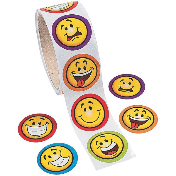 Fun Express Goofy Smile Face Sticker Rolls. (100 Stickers Per Roll, Shrink-Wrapped)